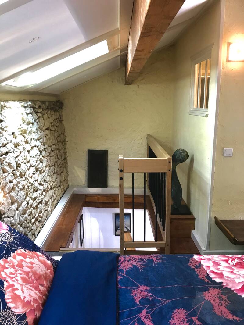 via een open trap bereikt u de slaapkamer en badkamer, die het volgende hebben te bieden;